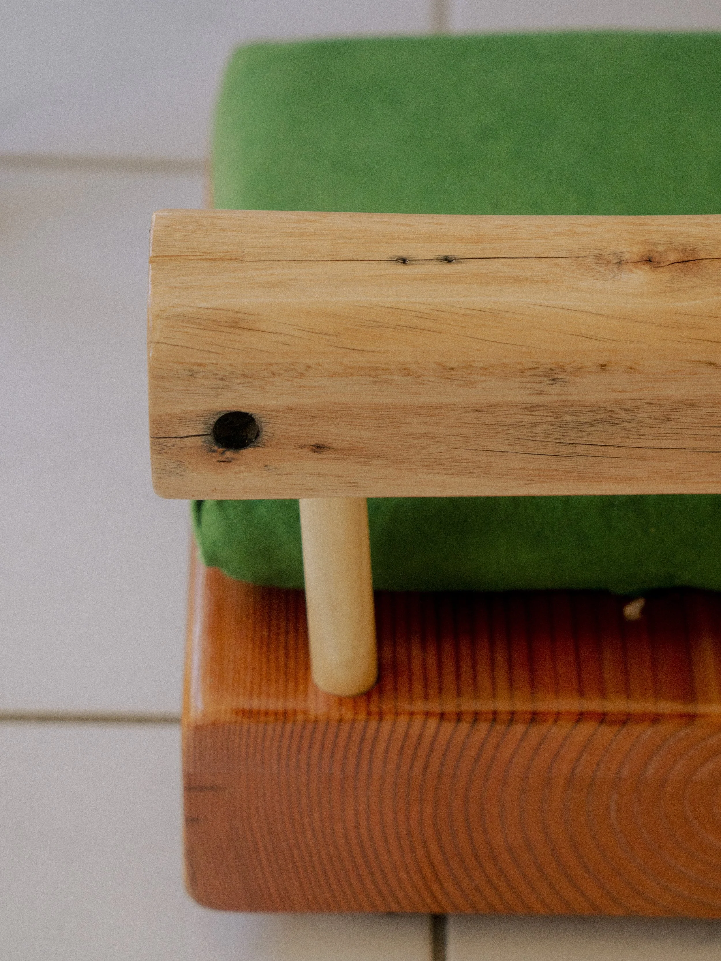 reclaimed ohi’a, douglas fir, poplar, canvas, foam